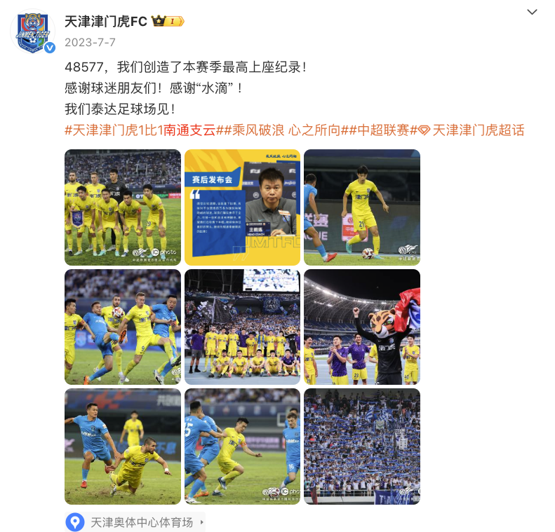 今日,据当地记者消息,天津津门虎本赛季联赛的收官战,即与上海申花的第30轮比赛,大概率将安排在天津奥林匹克中心体育场进行。