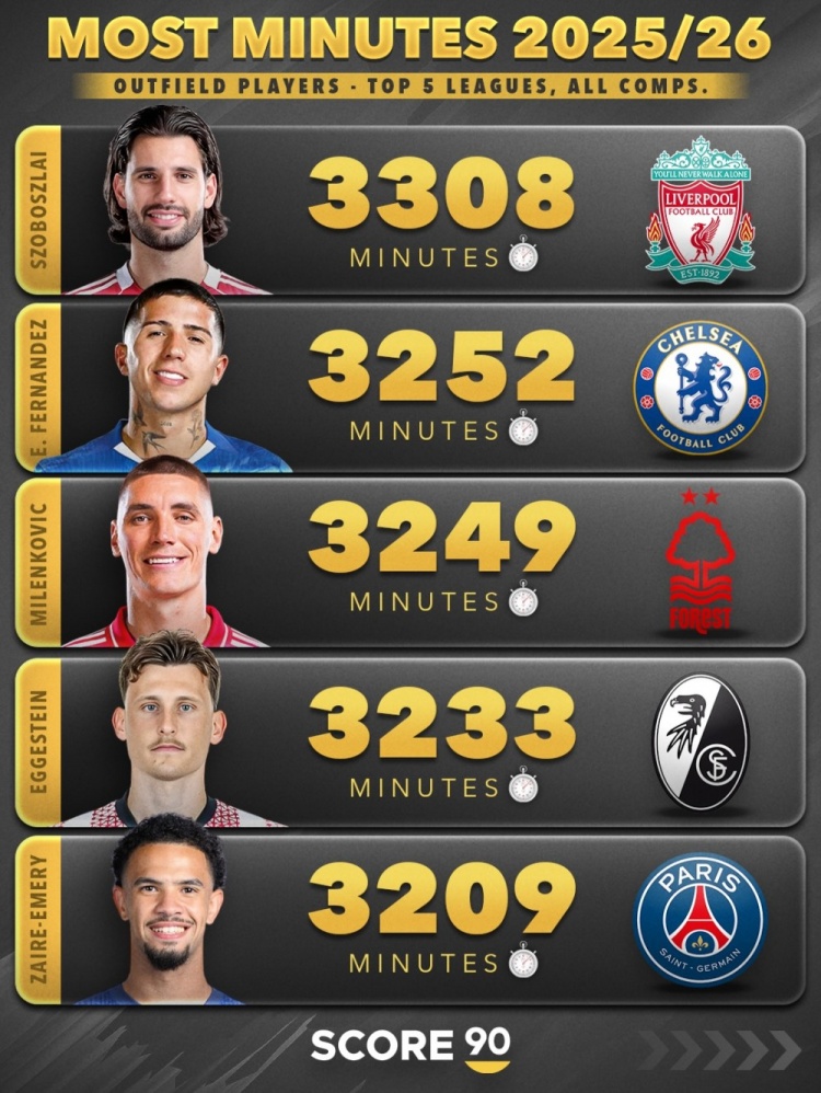 pgslot-本赛季五大联赛非门将球员出场时间榜:范戴克3510分钟第三