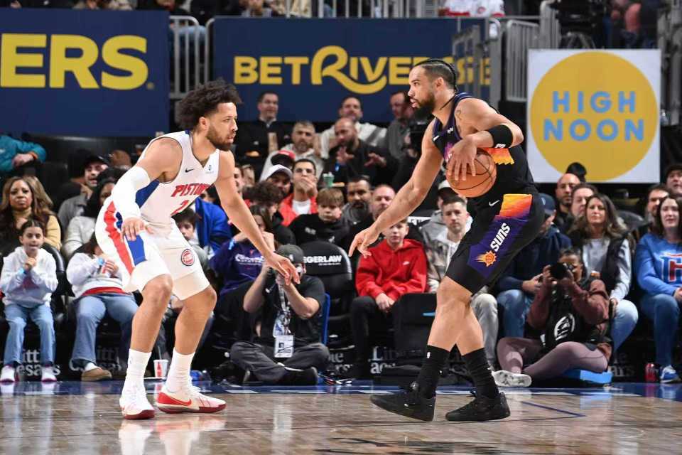 活塞上一场主场92-98惜败快船,太阳上一场客场121-127惜败热火。本场太阳缺少布克、杰伦-格林,活塞缺少摩尔与里德。首节开局,活塞内外开花取得11-3领先优势,太阳一波9-0攻势反超比分,双方交替领先缠斗至23-23。阿伦三分开火引领一波9-0攻势拉开比分,首节比赛结束活塞23-32落后太阳。首节活塞26中9,其中三分12中3,坎宁安7中1(三分4中0)仅4分3助攻;太阳22中11,其中三分14中6,阿伦3记三分13分。